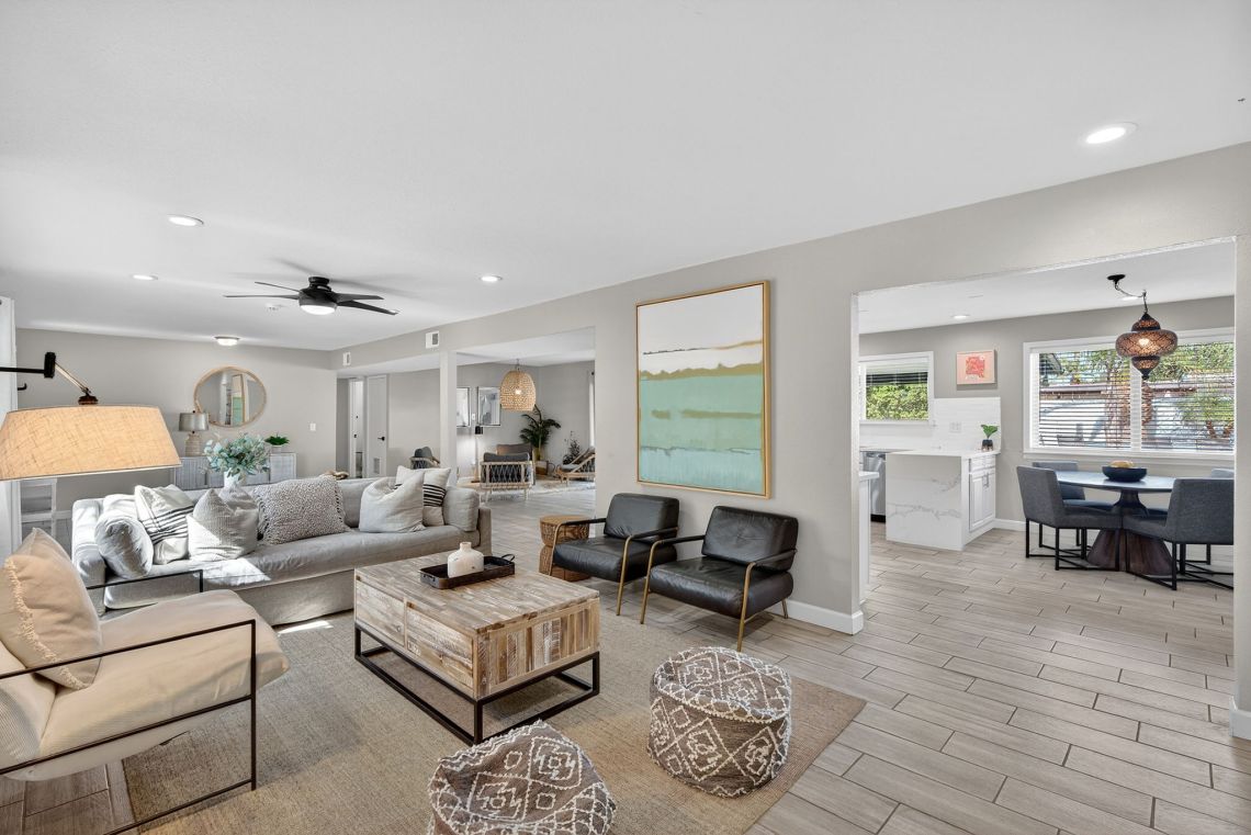 Inside, beautiful wood-look tile flooring flows seamlessly throughout the entire home, creating a cohesive and modern feel while offering durability for everyday living. The open floor plan allows natural light to move easily through the main living areas, making the space feel bright, welcoming, and effortlessly functional. Whether hosting friends, spending time with family, or enjoying a quiet evening at home, the layout supports both connection and comfort without sacrificing style.