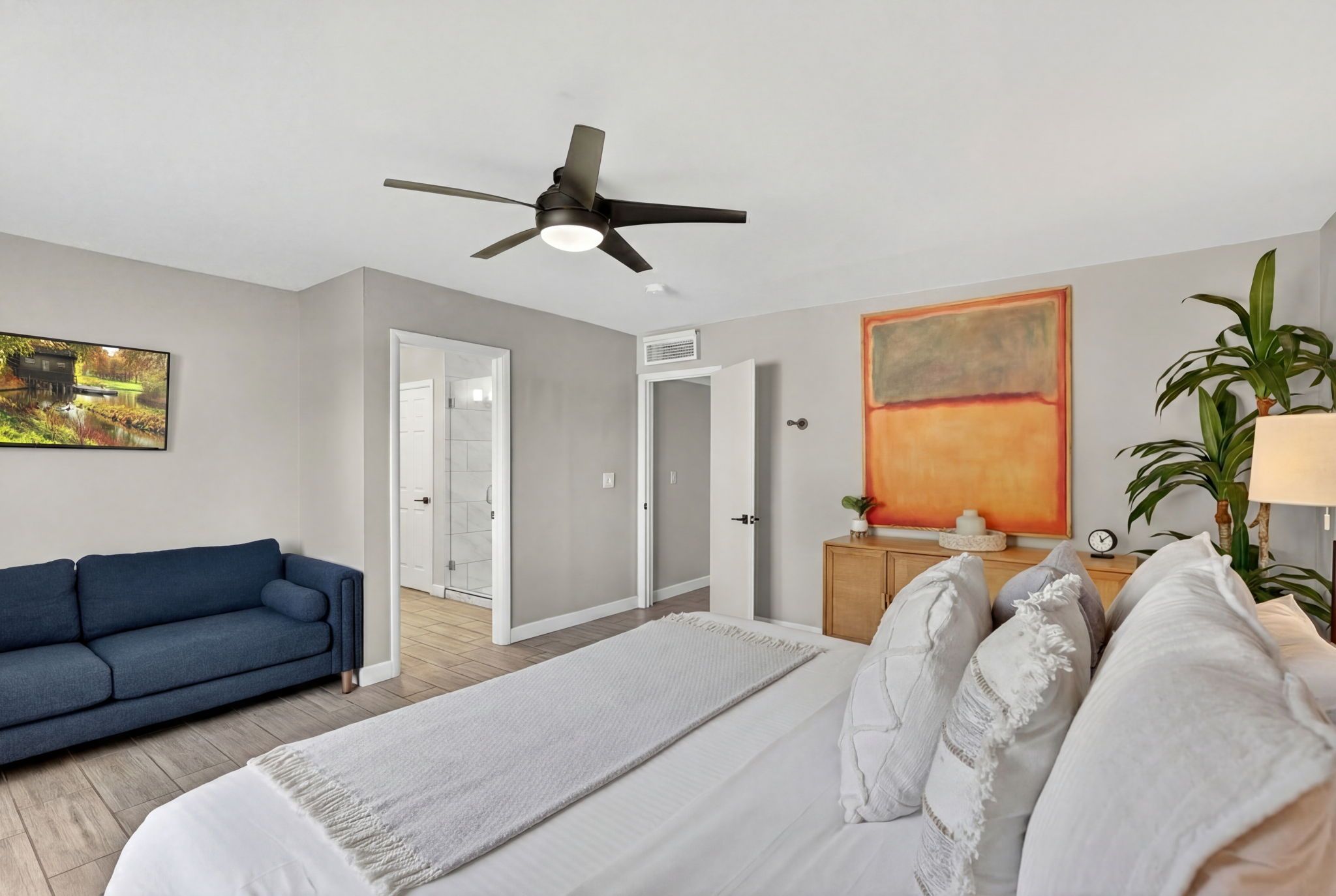 The spacious primary suite offers a true escape at the end of the day, complete with a beautifully updated bathroom featuring a tiled walk-in shower and a luxurious soaking tub for relaxation. An oversized laundry room with double washer and dryer setups adds exceptional functionality and opens the door to multiple possibilities, including conversion into a home office, gym, hobby space, or additional lounge area. Throughout the home, flexibility and thoughtful design allow the spaces to adapt to a variety of lifestyles and needs.