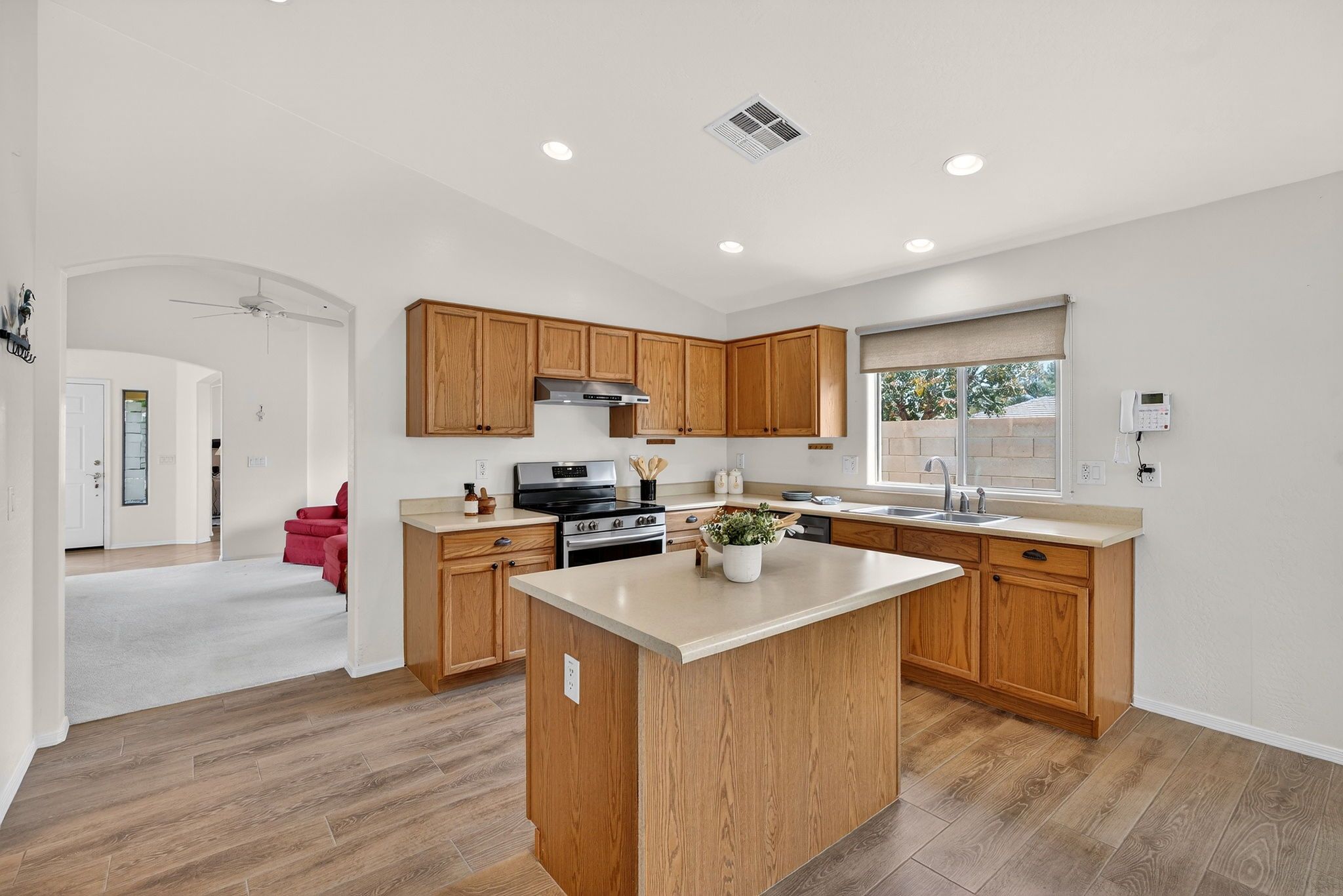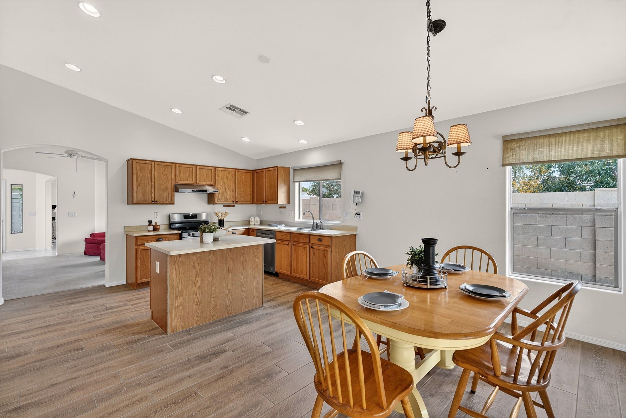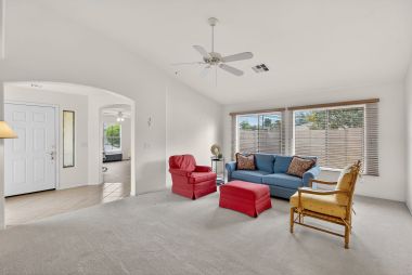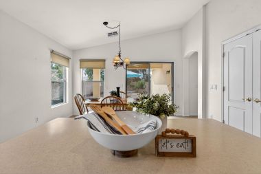 Step inside to bright, open living spaces designed to feel welcoming from the moment you arrive. Vaulted ceilings, neutral tones, tile flooring, and ceiling fans create an atmosphere that is both airy and comfortable. Natural light fills the home, enhancing the open floor plan and making each room feel connected and easy to enjoy. Whether you’re hosting friends, spending time with family, or enjoying a quiet evening at home, these spaces adapt beautifully to your lifestyle.