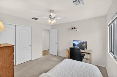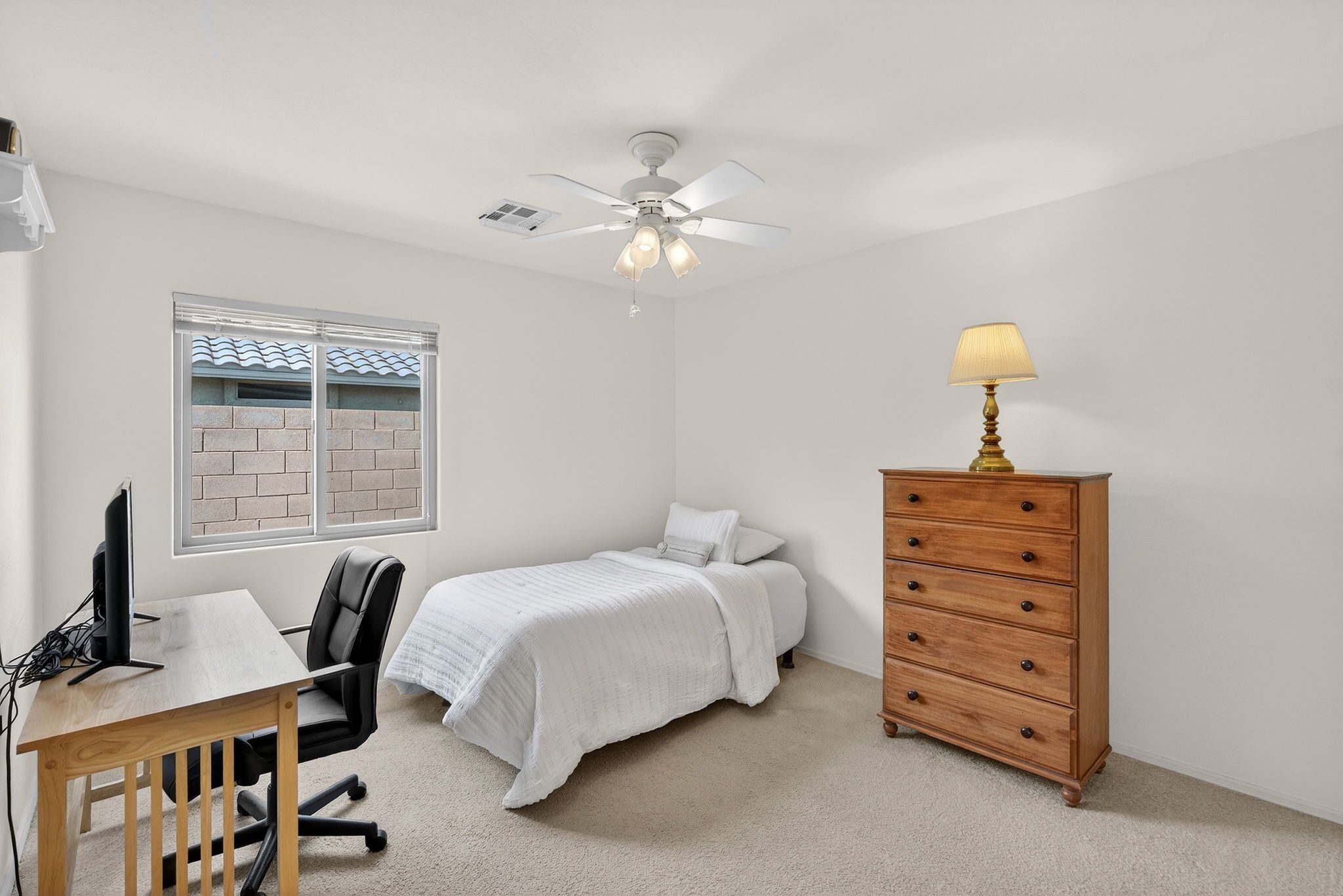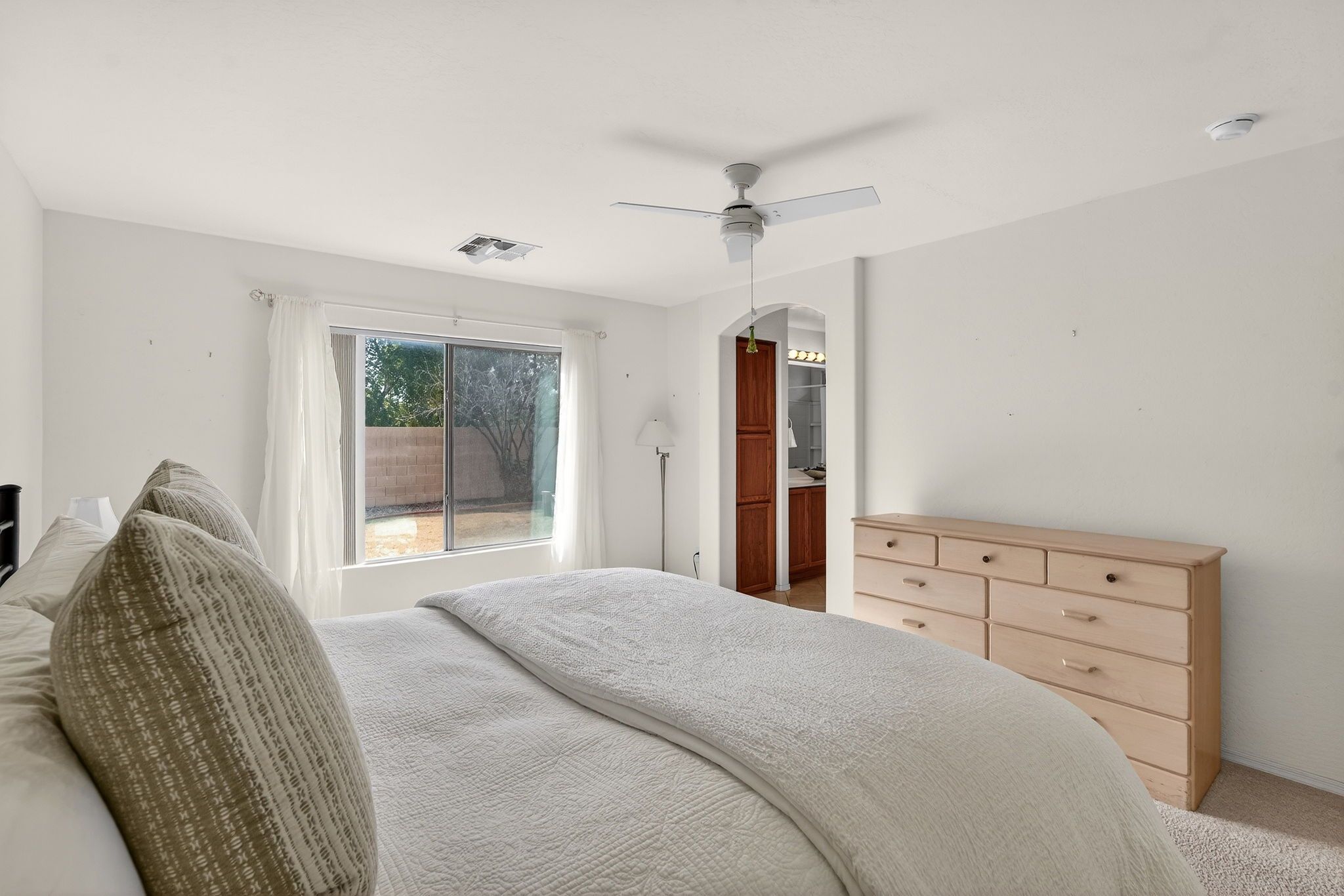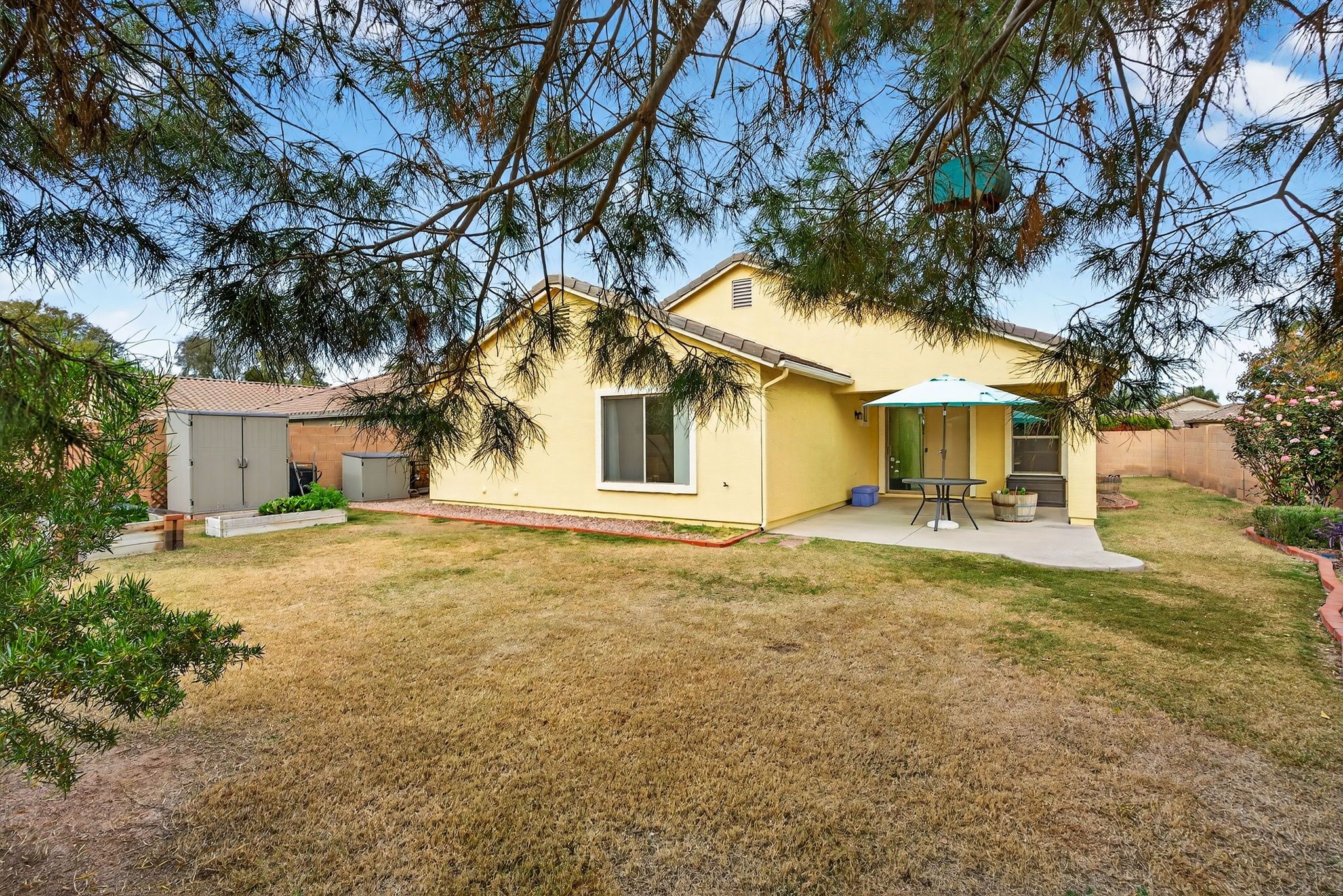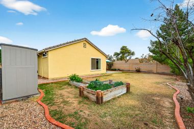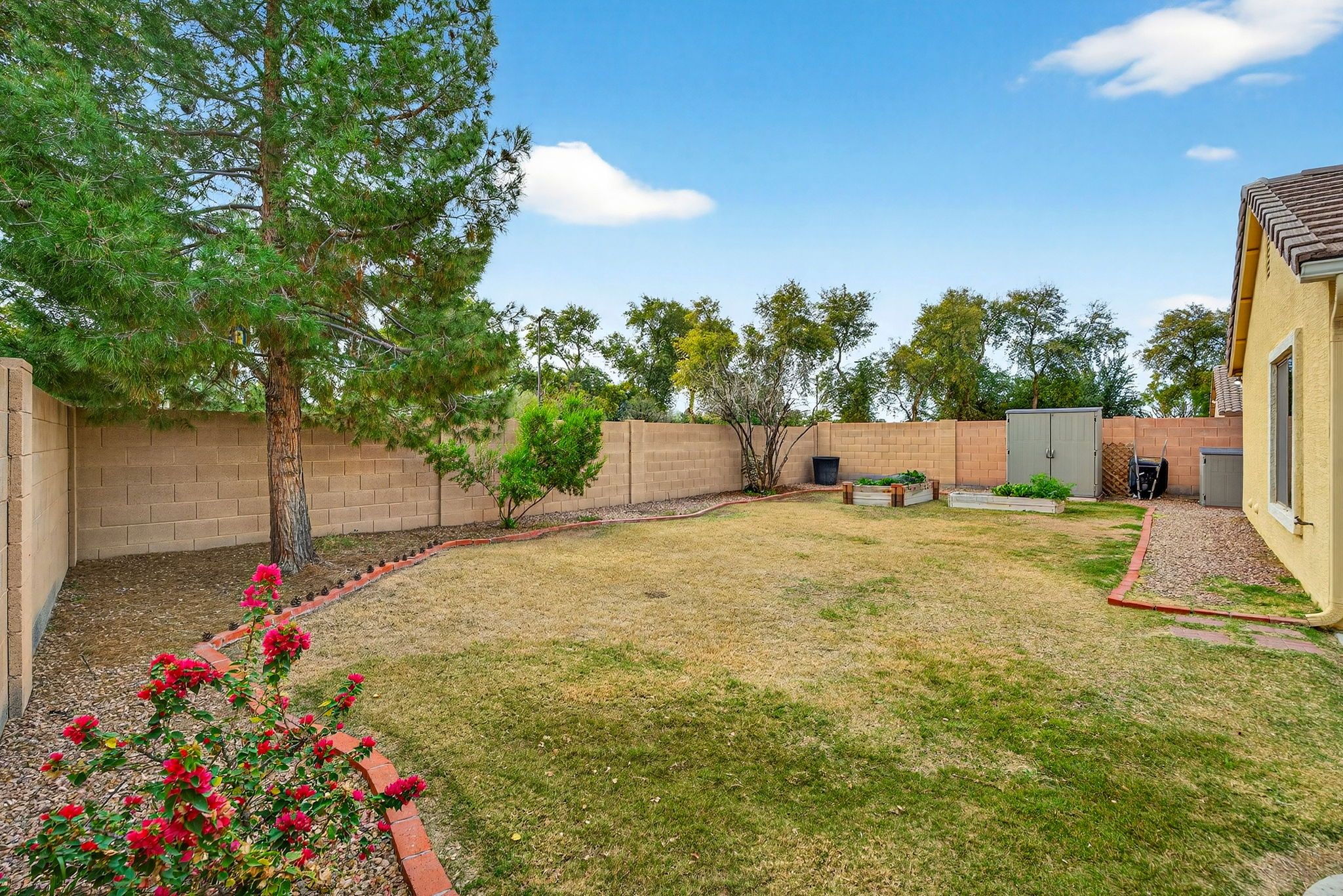 Sliding glass doors open to a spacious backyard, creating seamless indoor-outdoor living. Step outside to a covered patio that’s perfect for morning coffee, evening conversations, or simply enjoying Arizona’s beautiful weather. A charming vegetable garden adds character and opportunity—inviting you to grow your own fresh produce and enjoy peaceful sunsets in your own backyard retreat. With plenty of room to relax and entertain, this outdoor space extends your living area and enhances everyday life.