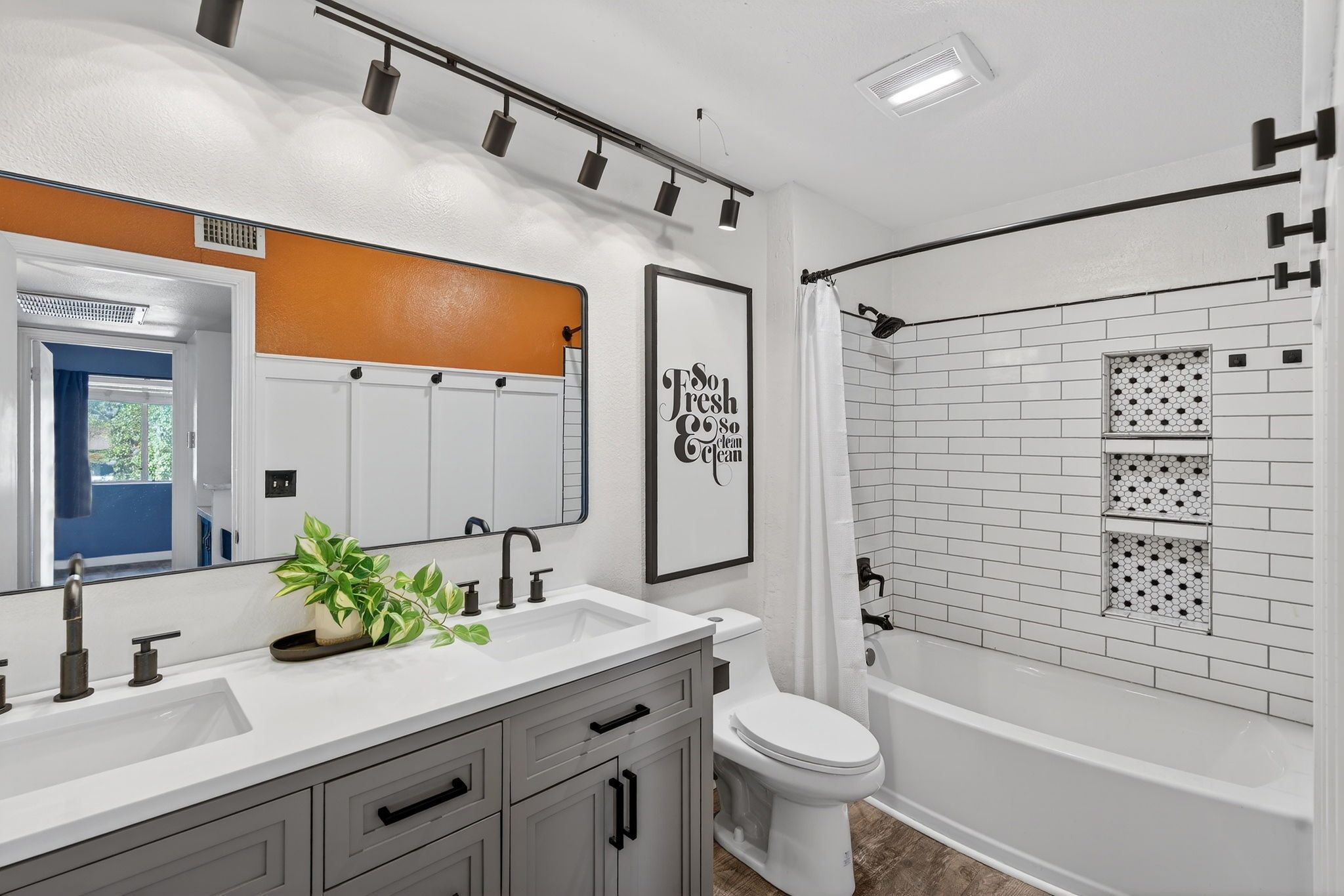 All three bathrooms have been redesigned with popular white subway tile and updated finishes, striking the perfect balance between classic and modern. Every detail was chosen to feel bright, fresh, and easy to maintain but its the stylish refresh that will keep your friends talking!