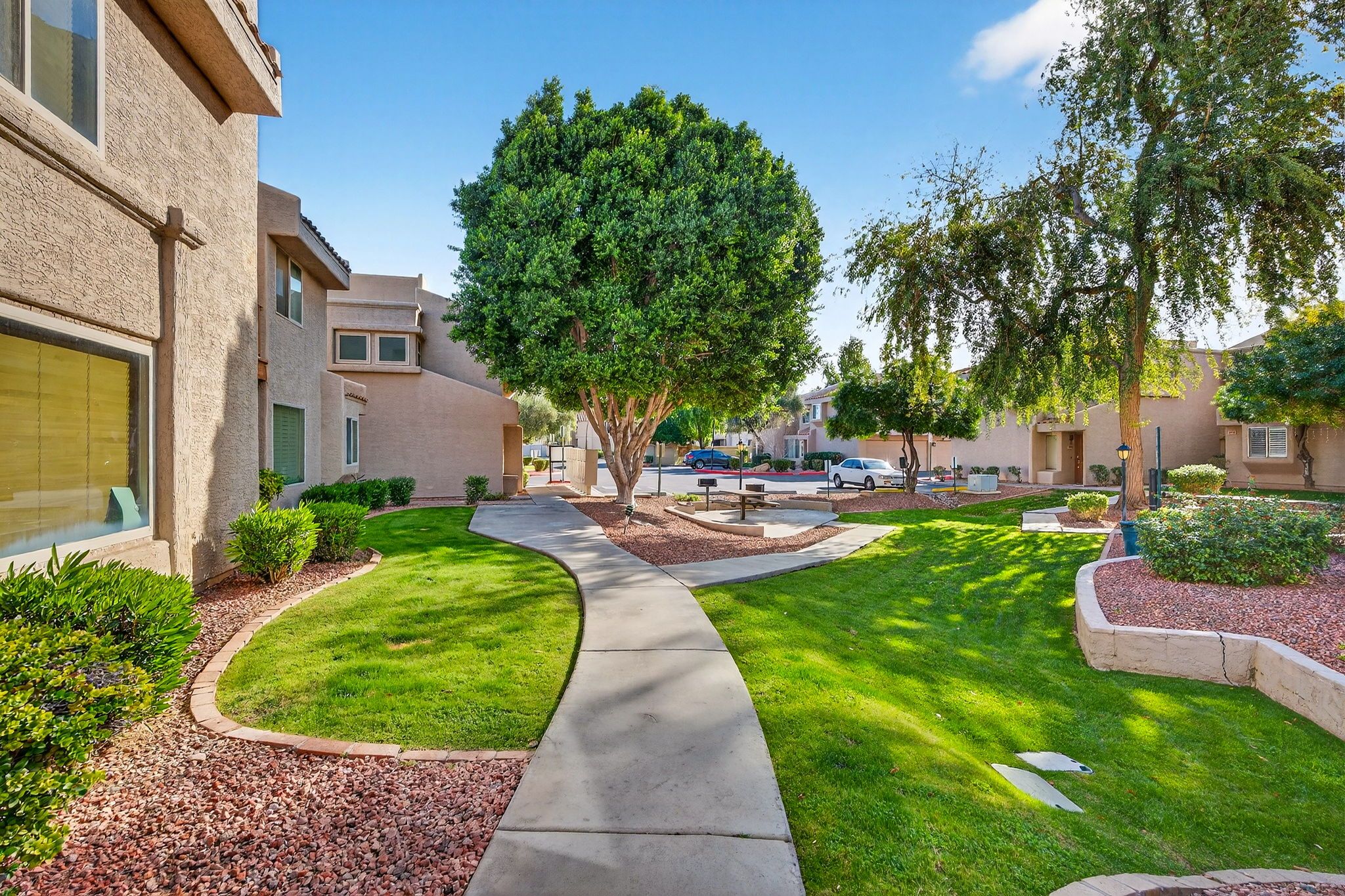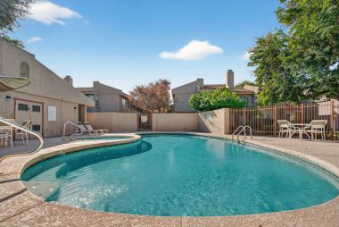 Sliding doors off the living room and primary bedroom create seamless indoor-outdoor living typically hard to find in this area and at this price point. The upstairs primary suite opens to a private balcony - an ideal spot for morning coffee or winding down in the evening. With three outdoor living spaces to choose from, you get to enjoy the Arizona weather without the maintenance of a single family home.