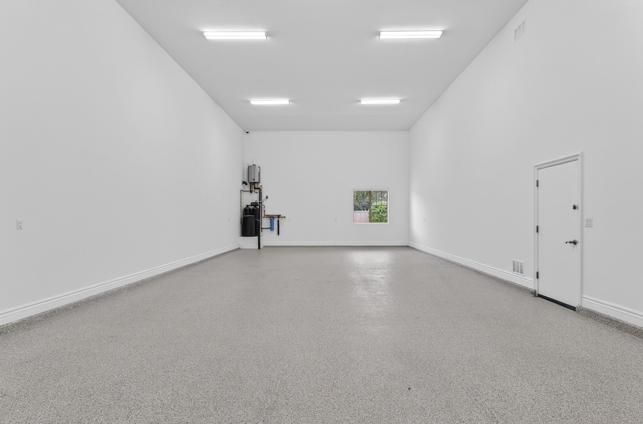 Beyond its beautiful design, the home offers an impressive list of functional upgrades including a woodworking shop with extensive electrical capacity, dust collection system, and compressed air lines. The insulated garage features its own HVAC system, and the property includes an RV garage with tankless water heater with recirculation, reverse osmosis system, water softener, smart pool controls, drip irrigation, and keyless exterior entry - all thoughtfully selected when the home was designed as a forever home.