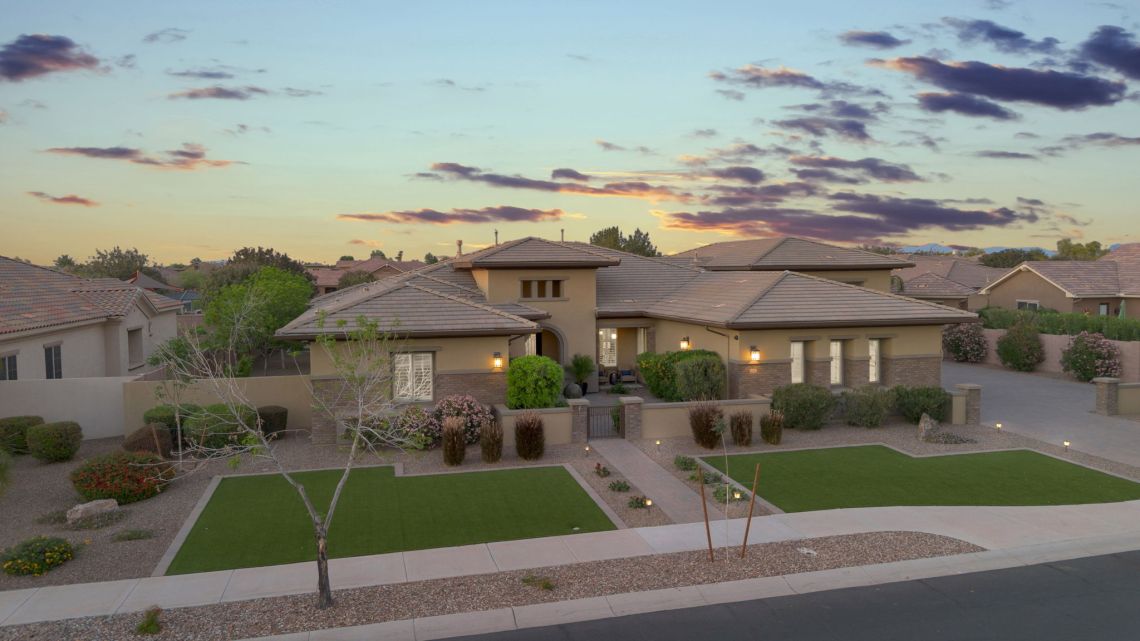 Welcome to a home designed for both luxury living and everyday comfort in one of Gilbert’s most desirable gated communities. Located in Legacy at Freeman Farms by Fulton Homes, this beautifully upgraded single-level residence sits on nearly half an acre, offering rare space, privacy, and thoughtfully curated upgrades throughout. With 5 bedrooms, 5.5 bathrooms, and a 6 car oversized RV garage and an additional climate controlled 2 car garage - the home blends elegant design, modern convenience, and resort-style outdoor living in a gated community with landscaped walking paths and modern amenities.
