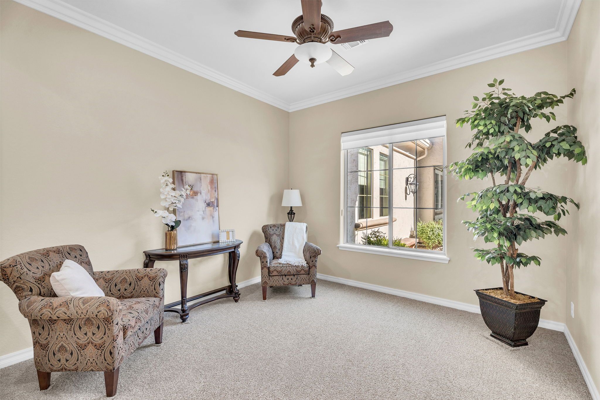 Welcome to this exquisite 3,458-square-foot single-level estate, a true masterpiece in the highly sought-after Fulton Ranch community. Nestled on an oversized south-facing corner lot, this original-owner home has been immaculately maintained and is now available for the first time. With its timeless upgrades, elegant design, and an abundance of space, this home offers the perfect combination of luxury and functionality. The private courtyard provides a serene entrance, setting the stage for the grandeur that awaits inside.
