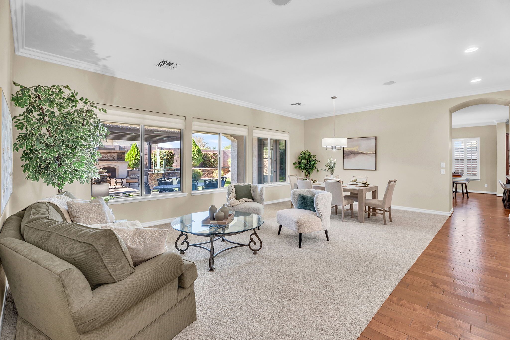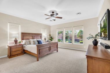 Step into luxury with this rare single-level estate in the prestigious Fulton Ranch community! Sitting on an oversized corner lot, this meticulously maintained and recently upgraded, original-owner home is hitting the market for the very first time with brand new interior paint, new plush carpeting, and beautiful market-ready staging. With 3,458 square feet of thoughtfully designed living space, a dream backyard retreat, and a rare 4-car garage, this home offers a perfect balance of elegance, comfort, and convenience.