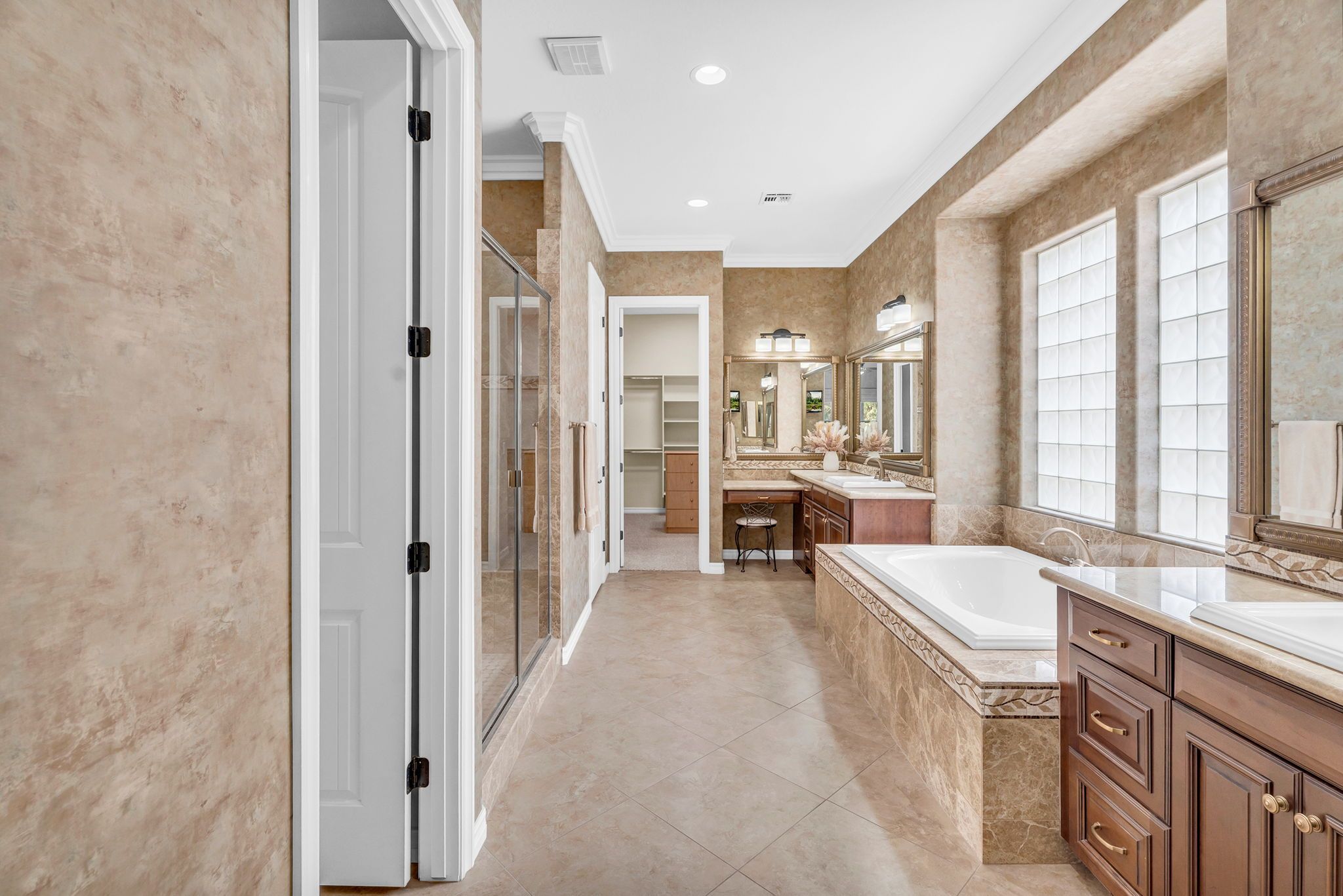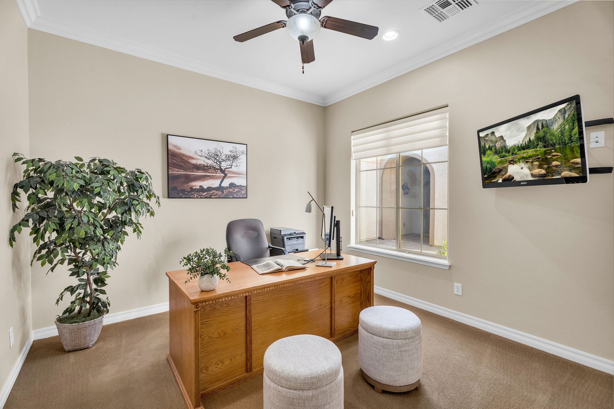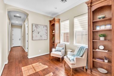 The oversized primary suite is a luxurious escape, offering a spa-like retreat designed for ultimate relaxation with brand new interior paint and carpet matching the new upgrades throughout. Unwind in the soaking tub, refresh in the spacious walk-in shower, and enjoy the convenience of an oversized walk-in closet. On the opposite wing of the home, you’ll find three additional bedrooms, a full guest bath, and a cozy reading nook—a thoughtful touch that adds warmth and character. The single-car garage has been transformed into a dedicated home workout center, offering the perfect space for staying active without ever leaving home.