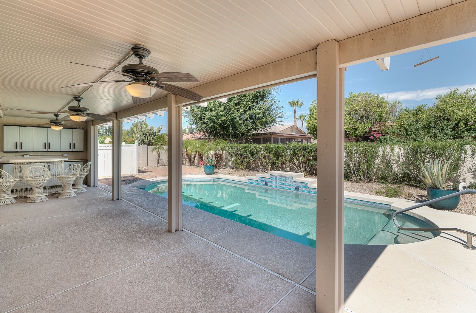 2. Loungin' Around - Built for entertaining, this single level lets you move and groove with your friends as you serve up snacks in the breakfast room or set up a game of cards in the great room. With sliding doors leading to the pool and french doors making way to the private side patio, your company will flow freely between indoor and outdoor fun.
