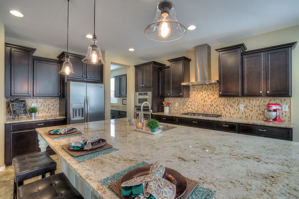 1. Be the "Hostess with the Most-est" - Can you MANAGE this kitchen? We'll bet you can! You could host a gourmet cooking show and spread your ingredients all over this oversized granite island or create a gourmet feast with the 6-burner gas range & wall oven/micro combo. There's plenty of room to store all of your kitchen fixings in the walk-in pantry. The custom maple cabinets have soft close doors and complement the gorgeous tile backsplash & rich granite counters.