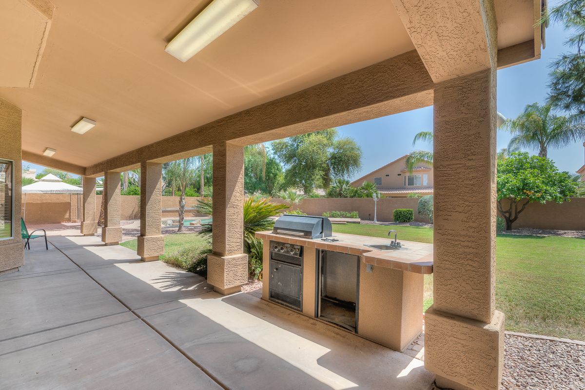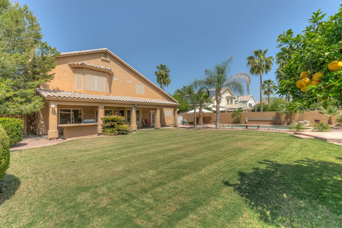 With a 13,560sf lot you'll have a lush lawn in the front yard and with the sparkling pool set off to the side, your backyard lawn is practically your own greenbelt - Oh, and there are also citrus trees. You'll have plenty of shade with the extended patio & you'll love the built-in BBQ.