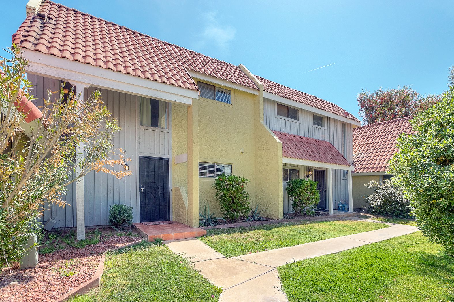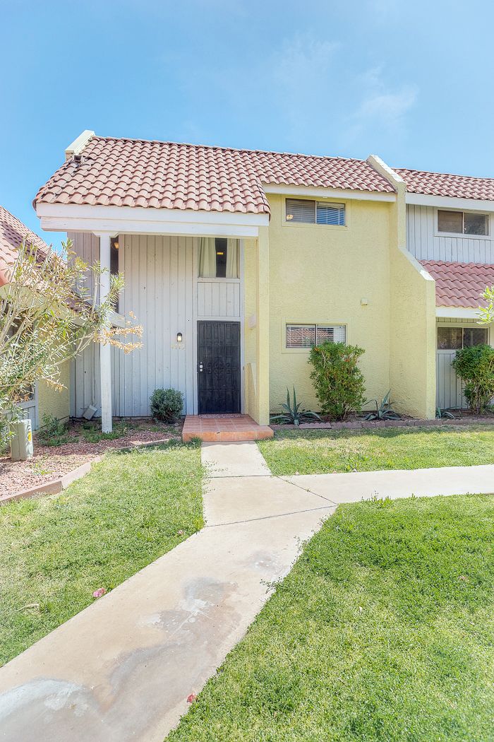 Outside, behind the brand new french doors, the paved patio space has a shaded area and space to sunbathe. You'll also enjoy the easy access to your covered parking spots through the new custom back gate, which offers privacy and security for early mornings and late nights and an easy pathway to the sparkling community pool & spa.