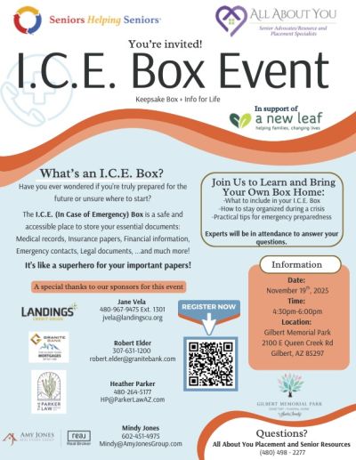 Get organized for life’s unexpected moments with our I.C.E. (In Case of Emergency) Box Event! You’ll learn exactly which essential documents to include, how to keep them easily accessible, and practical tips for strengthening your emergency preparedness. From medical records to legal paperwork, our experts will walk you through creating a personalized box that gives you clarity, confidence, and peace of mind.