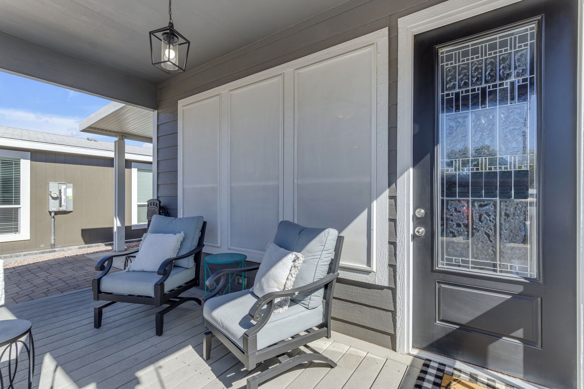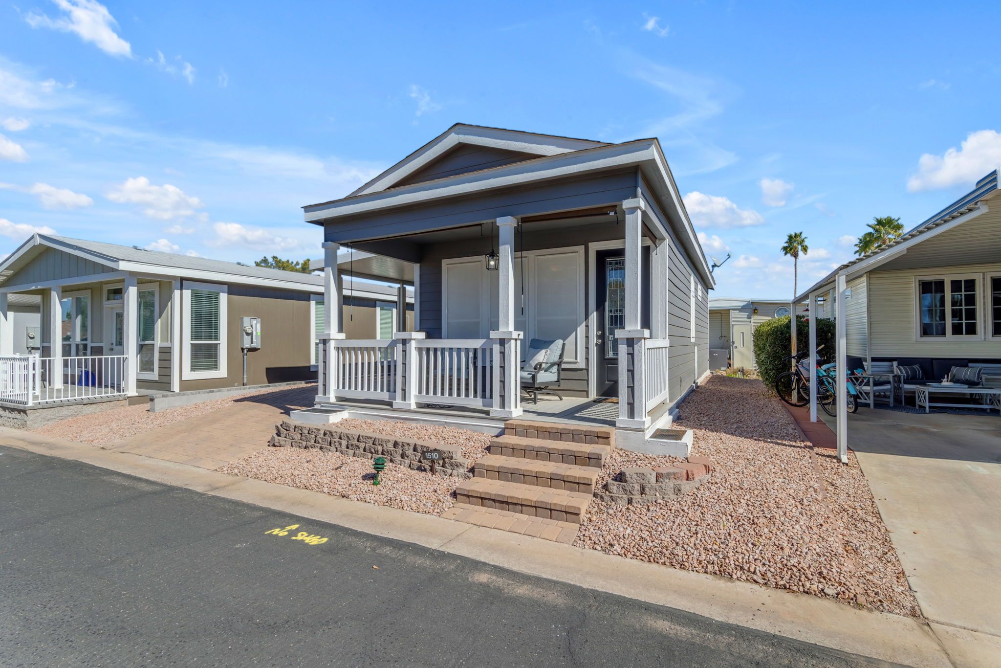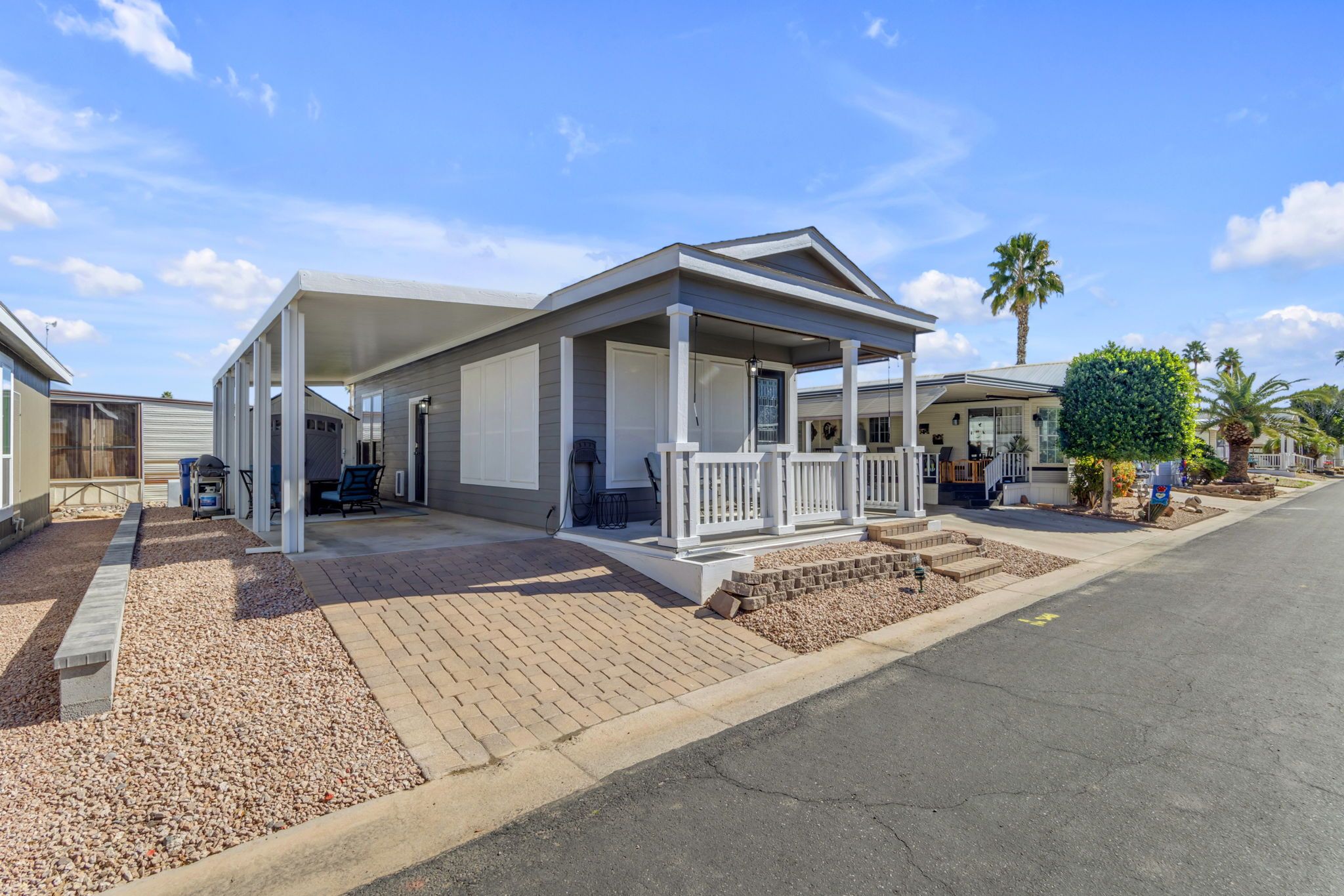 Truly a unique opportunity, this home sits in the amenity rich Monte Vista Village Resort with activities all around you. The covered porch and additional patio area in the covered parking creates several options for enjoying the Arizona weather and sunsets without ever leaving your home. Invite your neighbors over for an afternoon cocktail or enjoy a game of cards out on the deck, you'll use every square inch of the outdoor living space as the sun shines all year long.