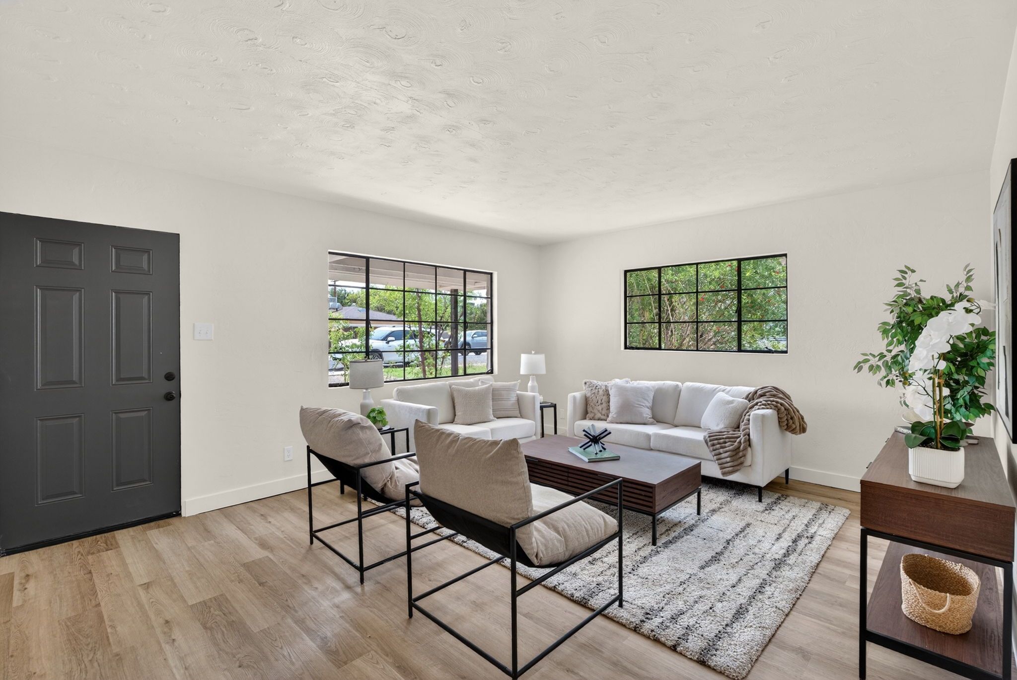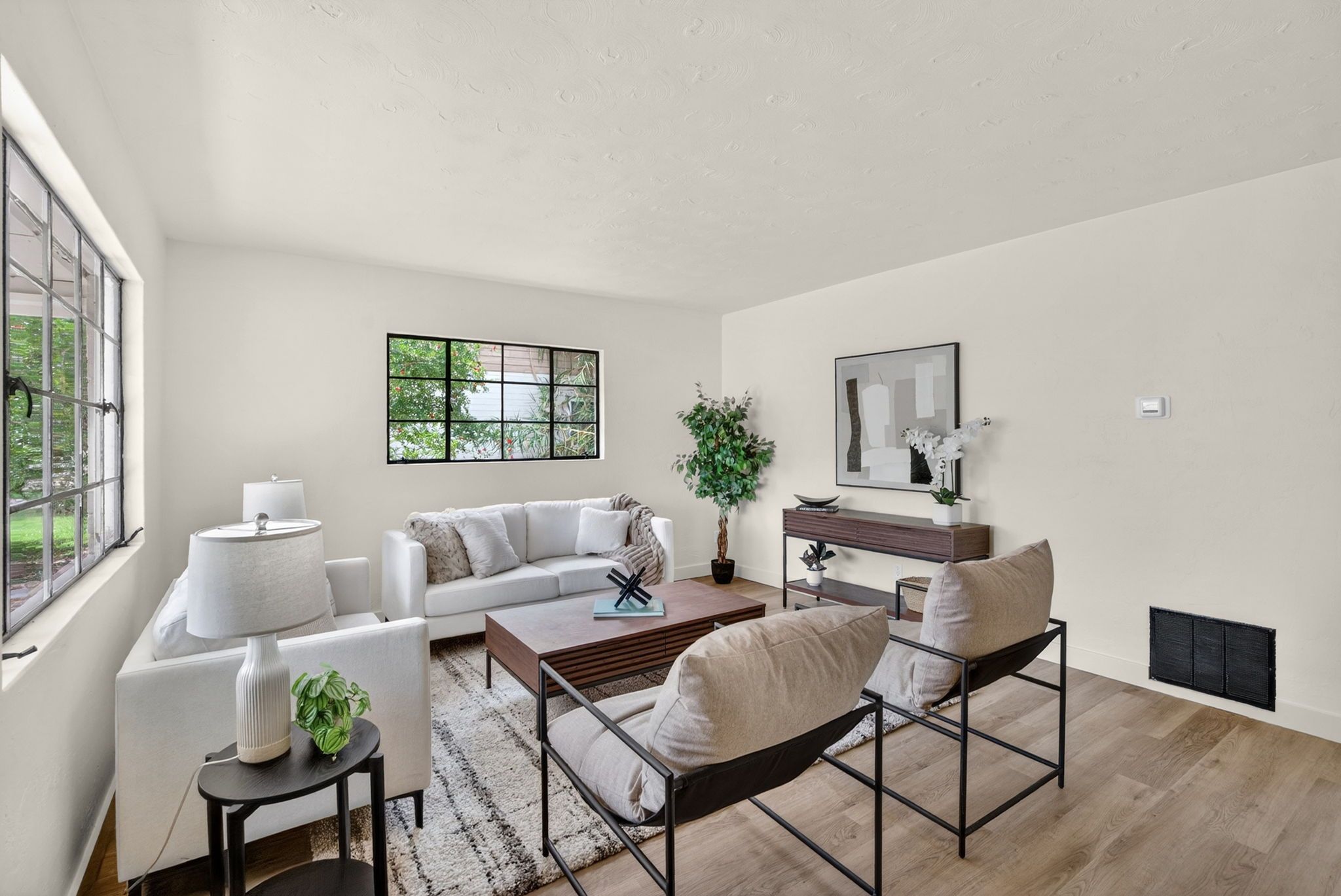 The main home offers approximately 1,200 square feet with 3 bedrooms and 1 bathroom, thoughtfully updated to create a clean, modern, and move-in ready space. Recent improvements include updated flooring, fresh interior paint, new baseboards, a refreshed kitchen, and a remodeled bathroom. Behind the scenes, key upgrades to plumbing and sewer systems add peace of mind. Several bedrooms feature private exterior entrances, offering added flexibility for guests, roommates, or work-from-home setups without sacrificing privacy.