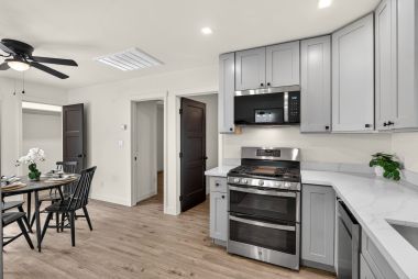Newly built and designed with versatility in mind, the detached guest house adds approximately 850 square feet of additional living space. Complete with a full kitchen, dining area, and two bathrooms, this space functions as a true second home. Multiple flexible rooms can easily serve as bedrooms, offices, or additional living areas depending on your needs. With exterior access from each bedroom, the layout is ideal for privacy, shared living arrangements, or hosting long-term guests.